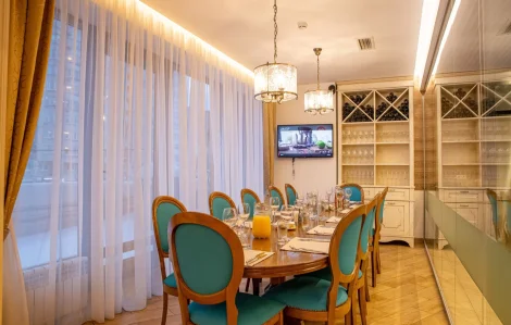Вкусотеррия работает в режиме 24/7, а два просторных зала площадью 140 и 180 кв м оснащены всем самым необходимым для проведения кулинарных мероприятий и праздников любого формата – от тимбилдинга и презентации до романтического свидания и детского дня рождения. Каждый зал вмещает до 45 гостей на банкет и 70 гостей на фуршет, и поделен на зоны: пространство для приготовления блюд, горячая и столовая зона, бар, караоке, презентационная зона.
